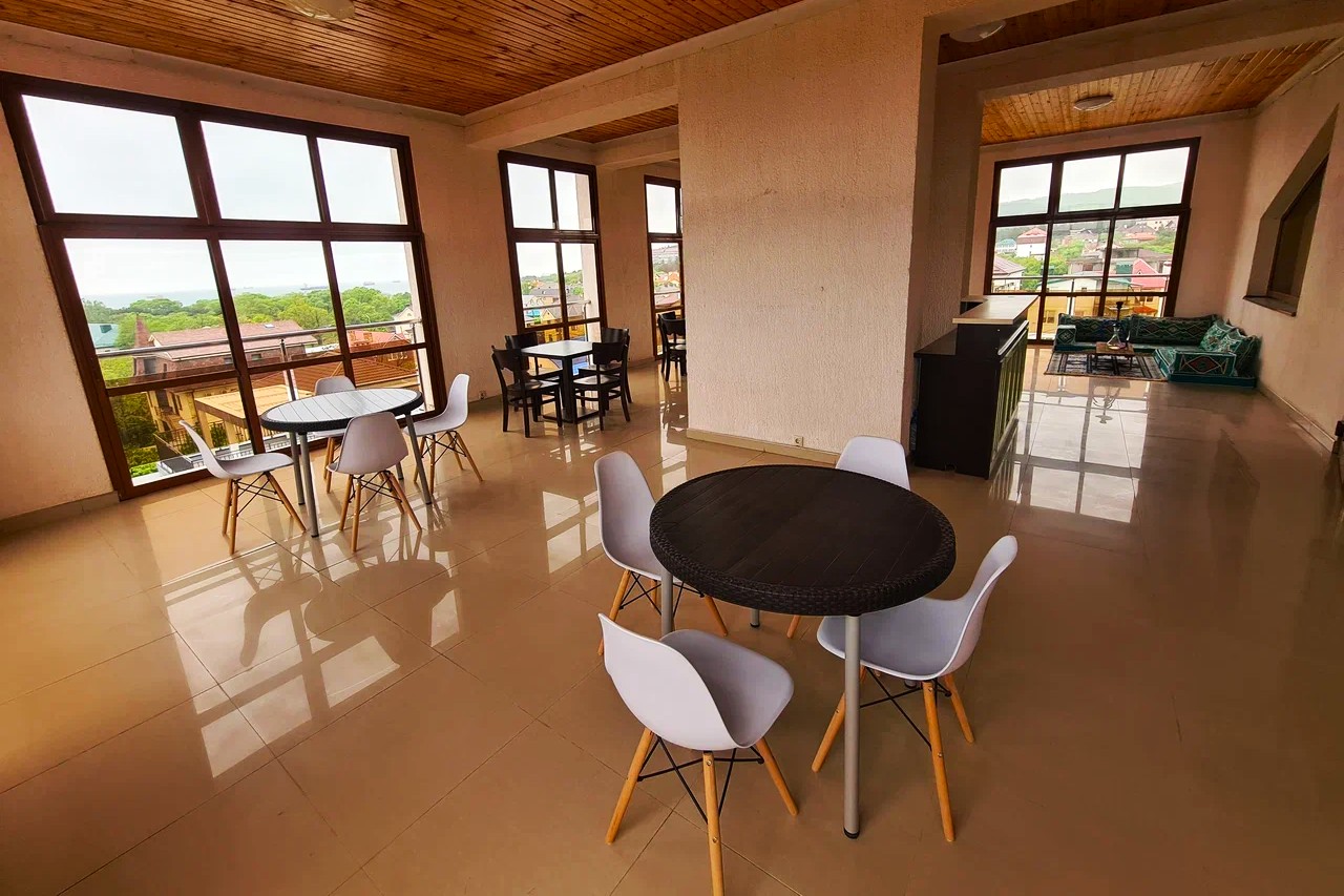 Романтика, витающая в гостевом доме, дает возможность реализации самых смелых идей – здесь можно устроить незабываемый праздник для родных и близких людей, сделать предложение руки сердца. Для малышей уютная детская площадка. Любители футбола и других видов спорта смогут всегда посмотреть матч любимой команды на плазменных экранах в кафе, наслаждаясь великолепным кофе и прохладительными напитками.